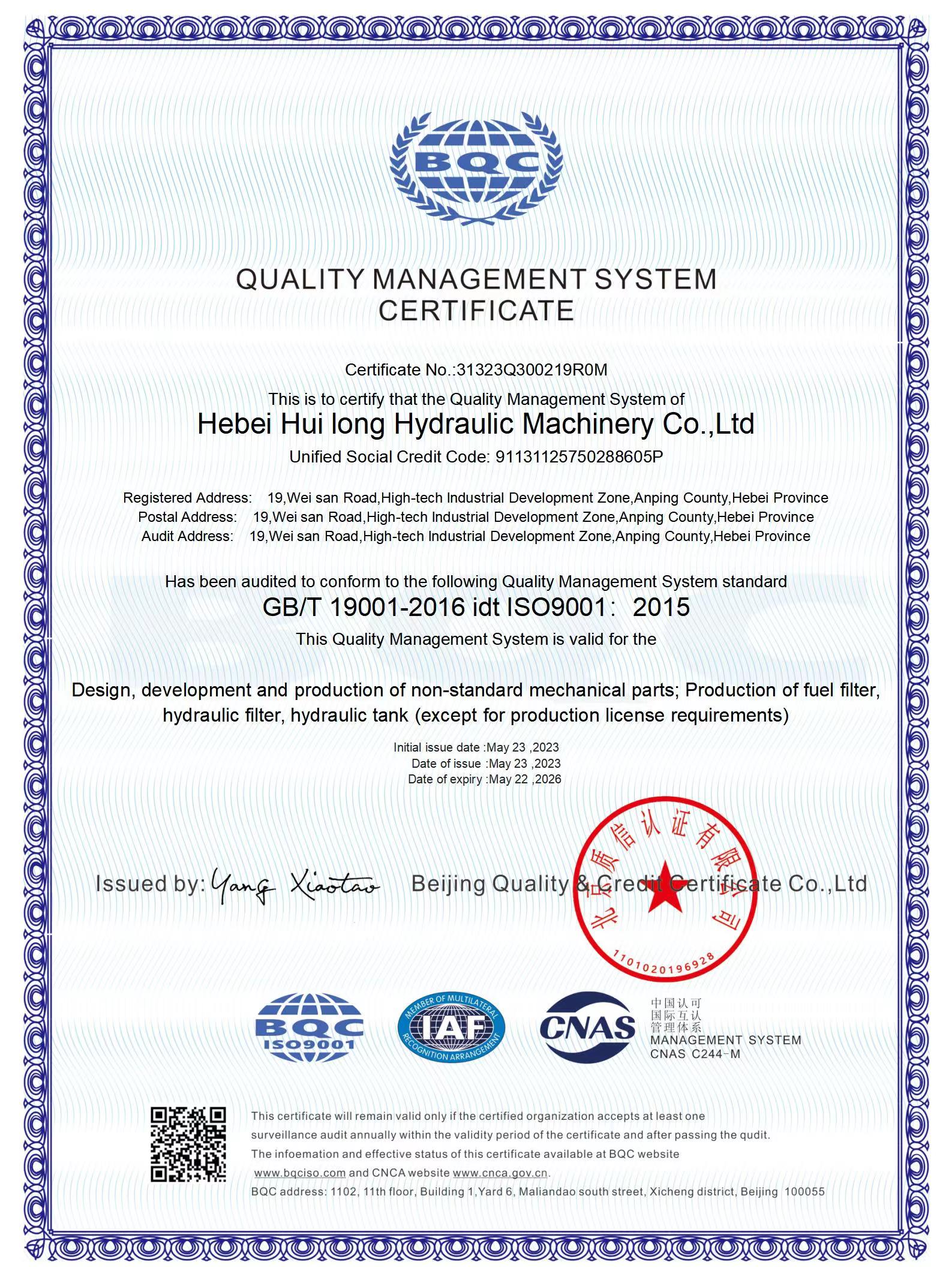 河北惠隆液壓機(jī)械有限公司主要生產(chǎn)回油過(guò)濾器,吸油過(guò)濾器,液壓過(guò)濾器,空氣過(guò)濾器等過(guò)濾產(chǎn)品我們一直致力于滿(mǎn)足市場(chǎng)的需求,為客戶(hù)的機(jī)械清潔運(yùn)行提供優(yōu)良的產(chǎn)品。本公司設(shè)備精良,工藝精湛,檢驗(yàn)檢測(cè)設(shè)備完善。產(chǎn)品全面按照ISO9001:2015質(zhì)量管理體系生產(chǎn),對(duì)采料,生產(chǎn), 銷(xiāo)售實(shí)施全程質(zhì)量控制,使產(chǎn)品質(zhì)量各項(xiàng)性能指標(biāo)均優(yōu)于國(guó)家標(biāo)準(zhǔn)企業(yè)每年均投入大量的資金,引進(jìn)精湛的流水線(xiàn)和改進(jìn)各種生產(chǎn)加工設(shè)備。