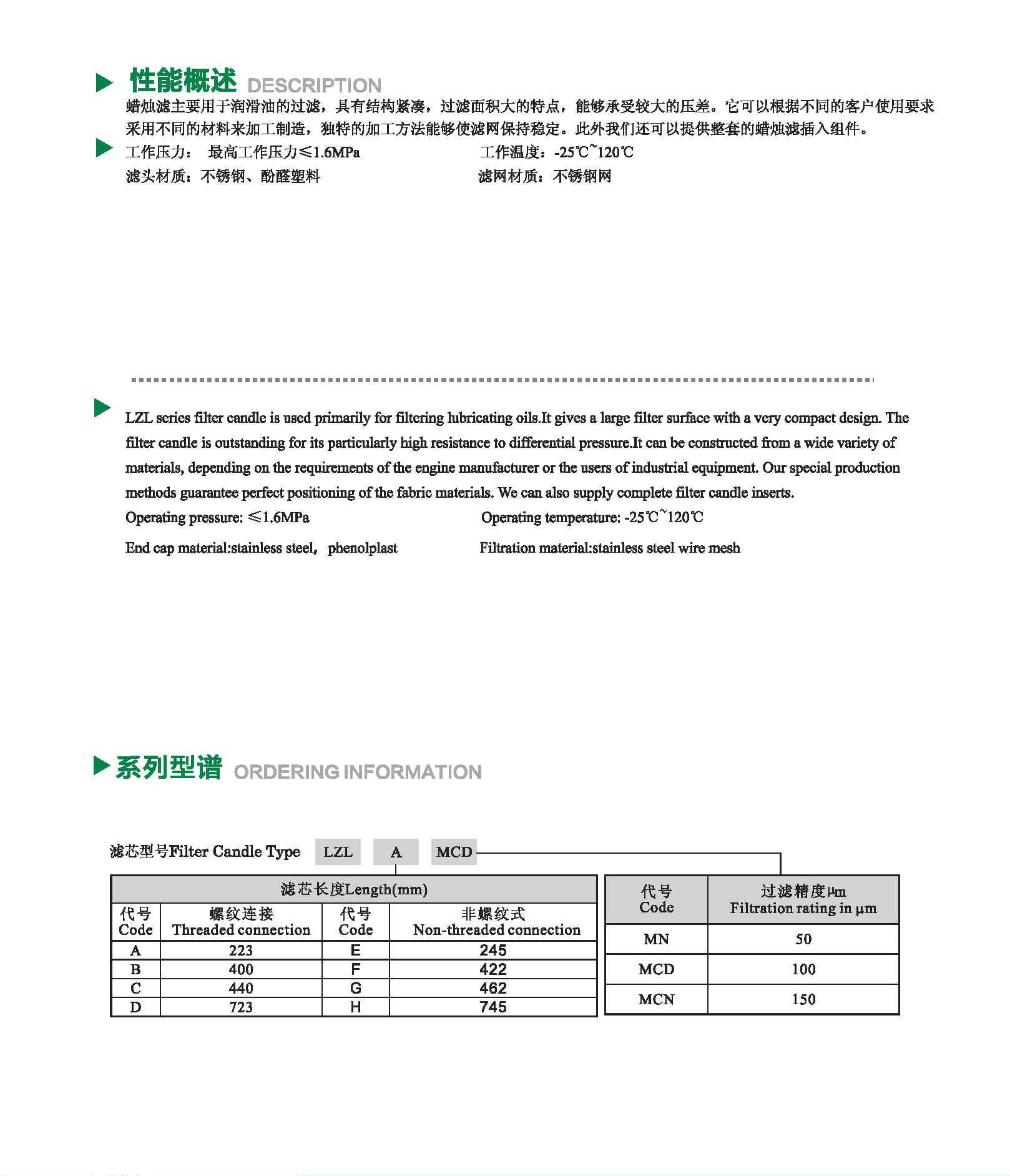 • LZL系列燭型濾芯